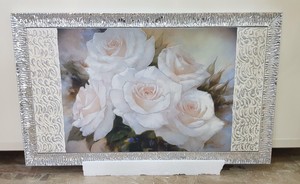 Quadro Con Rose Decorato Con Brillantini Cornice Argento Ebay