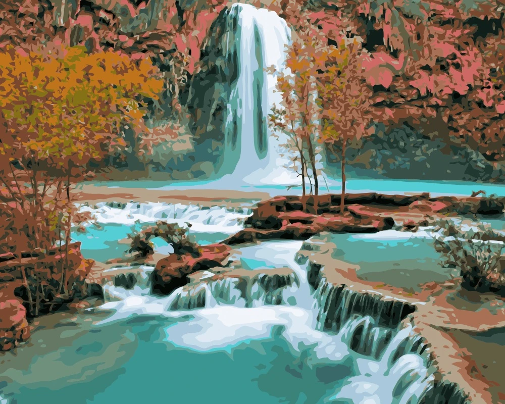 Huacan Pittura Con I Numeri Di Cascata Paesaggio Immagine Regalo Di Disegno Su Tela Di Canapa Dipinta A Mano Da Numero Di Paesaggio Della Decorazione Della Casa Colora Per Numero Aliexpress