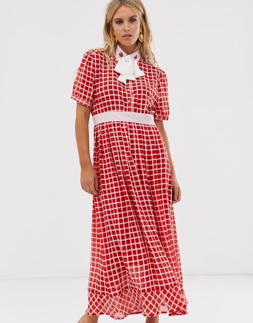 Sister Jane Vestito Al Polpaccio A Quadri Con Fiocco Decorato Con Coccinella Asos