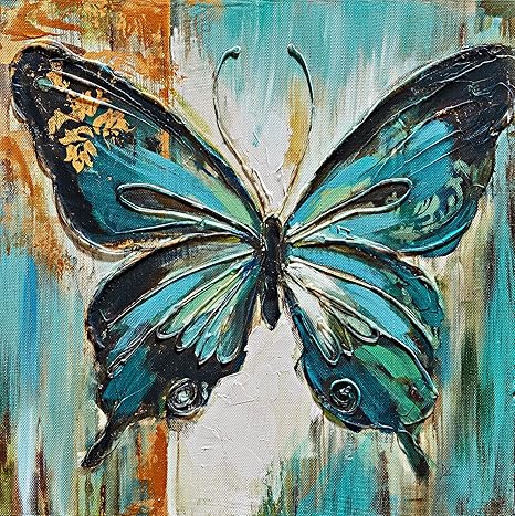 Bubola Quadro Azzurro Dipinto A Mano Farfalla Con Particolari In Rilievo Su Tela Dipiw544 30x30 Amazon It Casa E Cucina