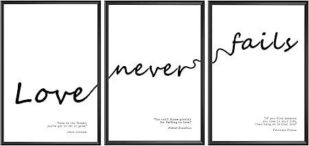 Boemy Carta Da Incorniciare Composizione Di 3 Fogli Decorativi Love Never Fails Crea Quadri Moderni Di Frasi Motivanti In Bianco E Nero Formato A4 Amazon It Casa E Cucina