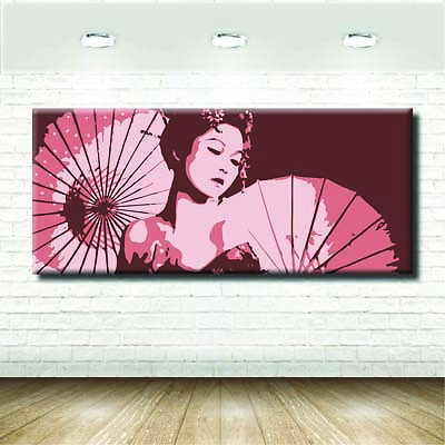 Quadri Giapponesi Moderni Donna Geisha Rosa Stampa Tela Arte Arredo 100x10 Ebay