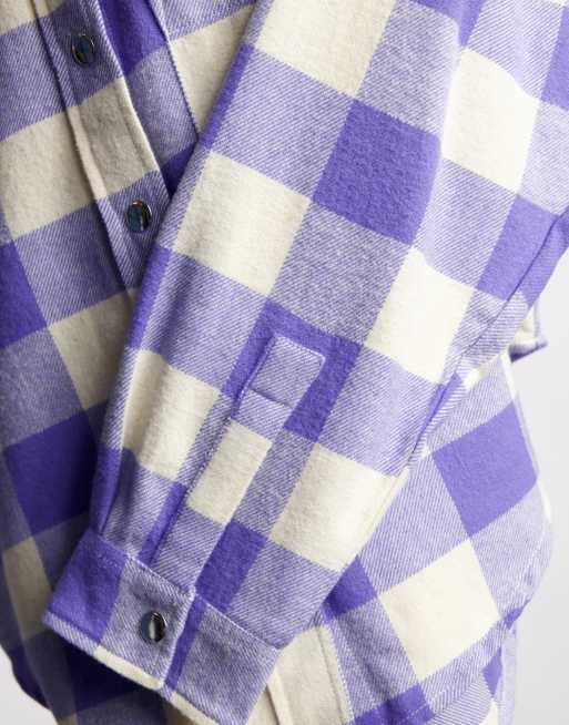 Asos Design Camicia Giacca Corta Viola A Quadri Con Bottoni A Pressione Sul Davanti Asos