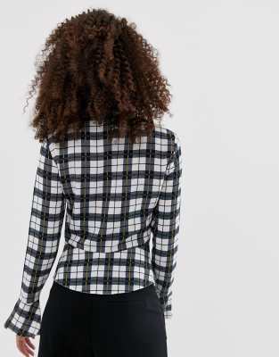 Closet London Vestito Stile Blazer A Maniche Lunghe Con Dettaglio Con Bottoni Oro A Quadri Misti Asos