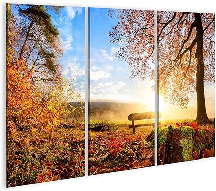 Islandburner Quadro Stampa Su Tela Quadri Moderni Paesaggio Di Autunno Con Il Sole Che Riscalda Calorosamente Un Banco Sotto Un Albero Molte Foglie Dell Oro E Cielo Blu Ufc Amazon It Casa E Cucina