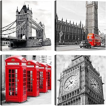 Quadri Londra 4 Pezzi 30x30 Cm Stampa Su Tela Con Telaio In Legno Arredamento Arte Arredo Moderno Amazon It Casa E Cucina