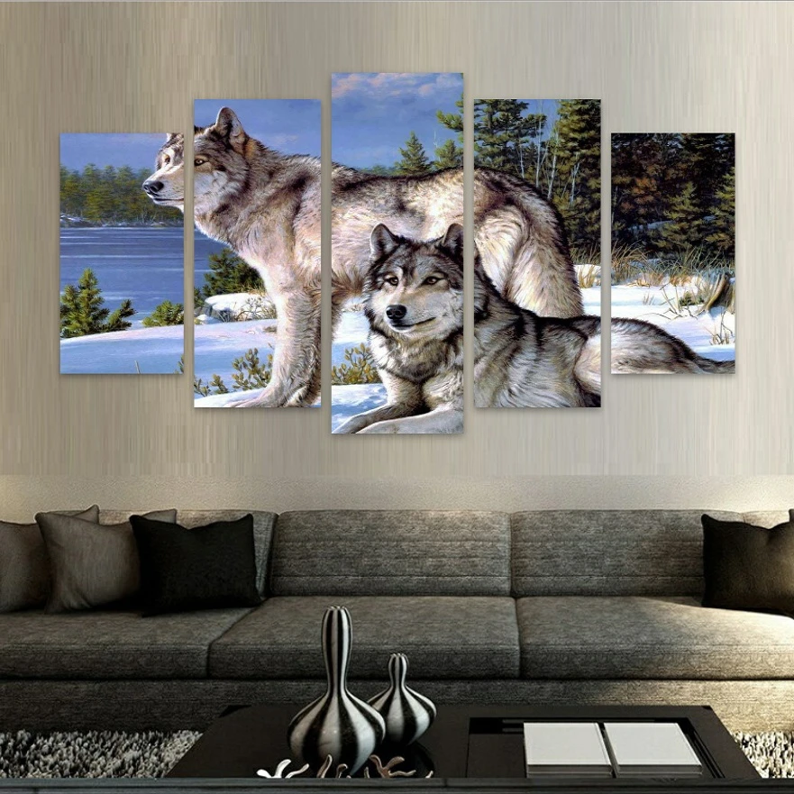 Precipito Modulare Lupi Pittura Murale Quadri Su Tela Per Soggiorno 5 Pz Senza Cornice Tela Pittura Sul Muro Di Arte Cuadros Decor Picture For Living Room Canvas Picturethe Paintings Aliexpress