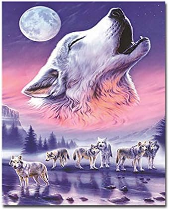 Juamazing Pittura A Olio Digitale Frameless Fai Da Te Con I Lupi Quadri Ultraleggeri Kit Mano Dipingere A Mano Animale Da Colorare Notte Di Luna Su Tela Decorazione Della Parete Di Arte