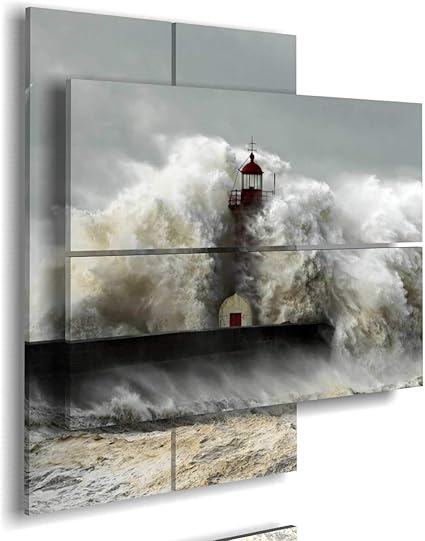 Duudaart Quadro Camera Da Letto Multilivello Quadri Moderni Faro Sul Mare In Tempesta 01 3d Grandi Dimensioni Amazon It Casa E Cucina