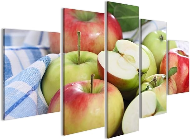 Islandburner Quadro Moderno Mele Rosse E Verdi Con Foglie Sul Tavolo Stampa Su Tela Quadri Moderni X Poltrone Salotto Cucina Mobili Ufficio Casa Fll Amazon It Casa E Cucina