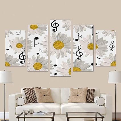 Lis Home Decorazione Da Parete Con Note Musicali E Opere D Arte Della Parete Delle Stampe Della Tela Della Margherita Per La Decorazione Della Casa Con Il Quadro Da 5 Pezzi Amazon It