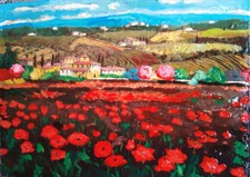 Quadro Paesaggio Toscana Dipinti A Mano Pronto D Appendere Papaveri Margherite Ebay