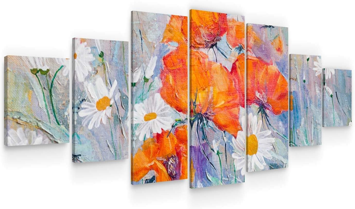 Startonight Grande Quadro Su Tela Papaveri E Margherite Grandi Quadri Moderni Fiori Stampe Soggiorno Xxl Di 7 Parti 100 X 240 Cm Amazon It Casa E Cucina