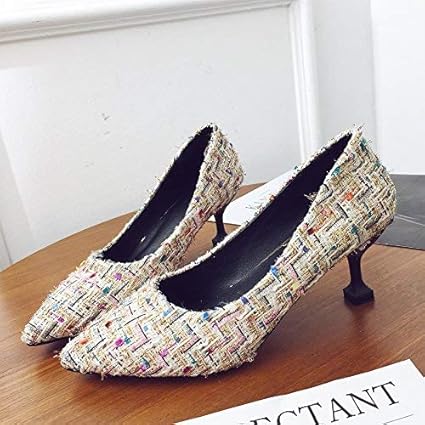 Eeayyygch Scarpe Corte Scarpe Col Tacco Alto Scarpe A Quadri Scozzesi Con Scarpe Basse Scarpe Basse Da 5 Cm Colore 33 Dimensione Champagne Color 9cm Amazon It Casa E Cucina