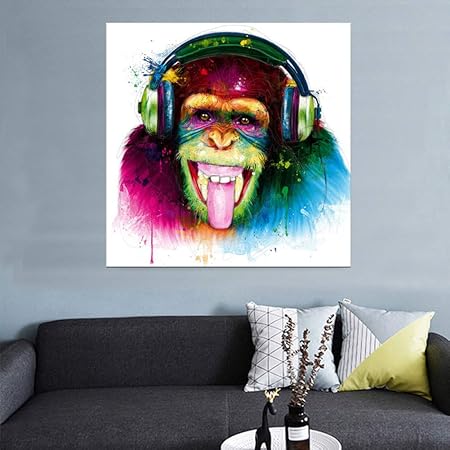 Lingbu Quadro Su Tela Tela Scimmia Animale Tela Stampata Pittura Moderna Divertente Pensiero Gorilla Con Cuffia Arte Da Parete Soggiorno Decor No Frame Amazon It Casa E Cucina
