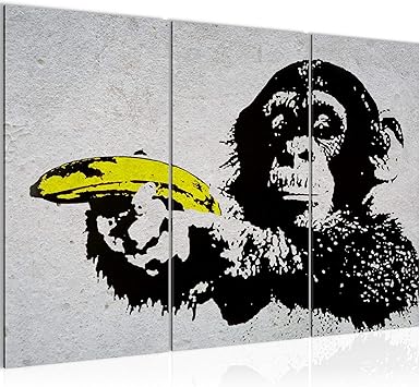 Runa Art Scimmia Con Pistola Bannana Banksy Quadri Soggiorno Grande Grigio Arte Di Strada 120 X 80 Cm 3 Pezzi Decorazione Murale 302831a Amazon It Casa E Cucina