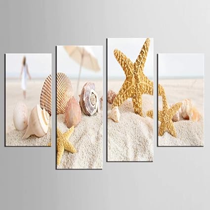 Tbdzps 4 Pannelli Stampe Su Tela Stelle Marine E Conchiglie Vista Sul Mare Stile Moderno Quadri Economici Quadri Decorativi Con Stampe D Arte Amazon It Casa E Cucina