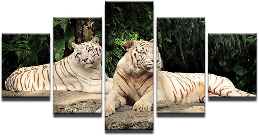 Hsdvjzc Pittura Su Tela Con Stampa Hd 5 Pezzi Pittura Animale Due Tigri Dipinti Su Tela Stampe Quadri Su Tela Quadri Moderni Decorazioni Per La Casa Amazon It Casa E Cucina
