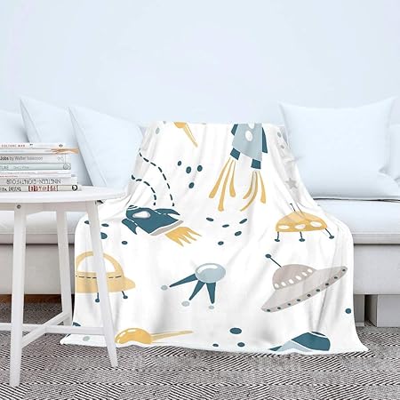 Axgm Coperta Per Bambini Motivo A Quadri Con Missili E Stampa Ufo Bianco 150 X 200 Cm Amazon It Casa E Cucina