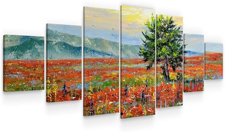 Startonight Grande Quadro Su Tela Albero Solitario Circondato Da Fiori Rossi Grandi Quadri Moderni Paesaggio Stampe Soggiorno Xxl Di 7 Parti 100 X 240 Cm Amazon It Casa E Cucina
