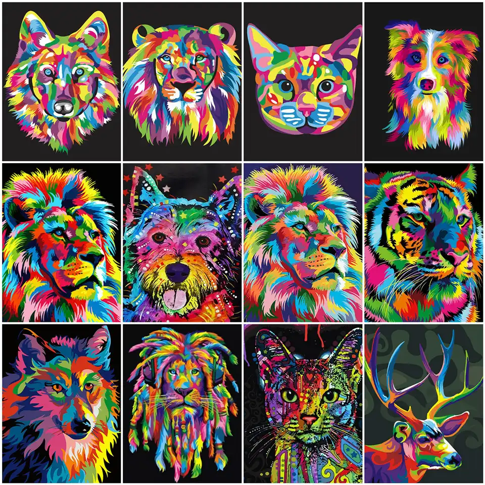 Azqsd Pittura A Olio Dai Numeri Leone Fai Da Te Acrilico Bambini Pittura Arte Della Parete Colorazione Dai Numeri Su Tela Kit Regalo Fatto A Mano Animale Colora Per Numero Aliexpress