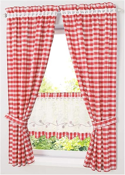 Necohome Set Di 2 Tende Da Cucina In Stile Country Con Coulisse Tenda A Quadri Con Fermatenda 2 Tende 2 Fermatenda Tessuto Poliestere Colore Rosso 80x120cmx2 Amazon It Casa E Cucina
