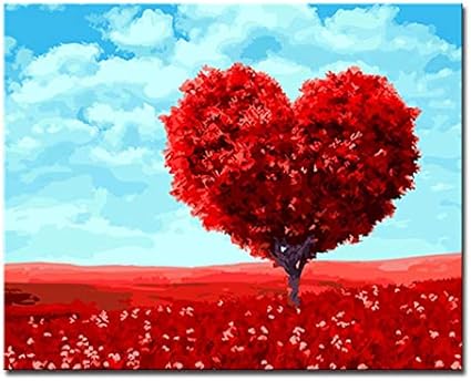 Xshszyh Dipingere Con I Numeri Albero Del Cuore Pittura Fai Da Te Con Kit Di Numeri Colorazione Calligrafia Romantica Albero D Amore Immagini Ad Olio Disegno Su Tela Decorazioni Per La Casa Uniche Amazon It Casa