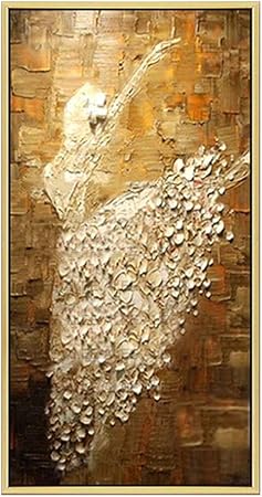 Yikui Painting 3d Puro Dipinti A Mano Ragazza Danzante Dipinti Ad Olio Bianco Dorato Verticale Astratti Su Tela Pittura Moderna Poster Art Decor Quadri Per Soggiorno Navata Senza Cornice 70x130cm Amazon It Casa E Cucina