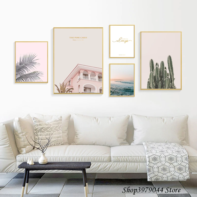 Deco Maison Quadro Canvas Painting Pink Flowers Poster Nordic Wall Art Quadri Da Parete Wall Pictures For Living Room Unframed Painting Calligraphy Aliexpress