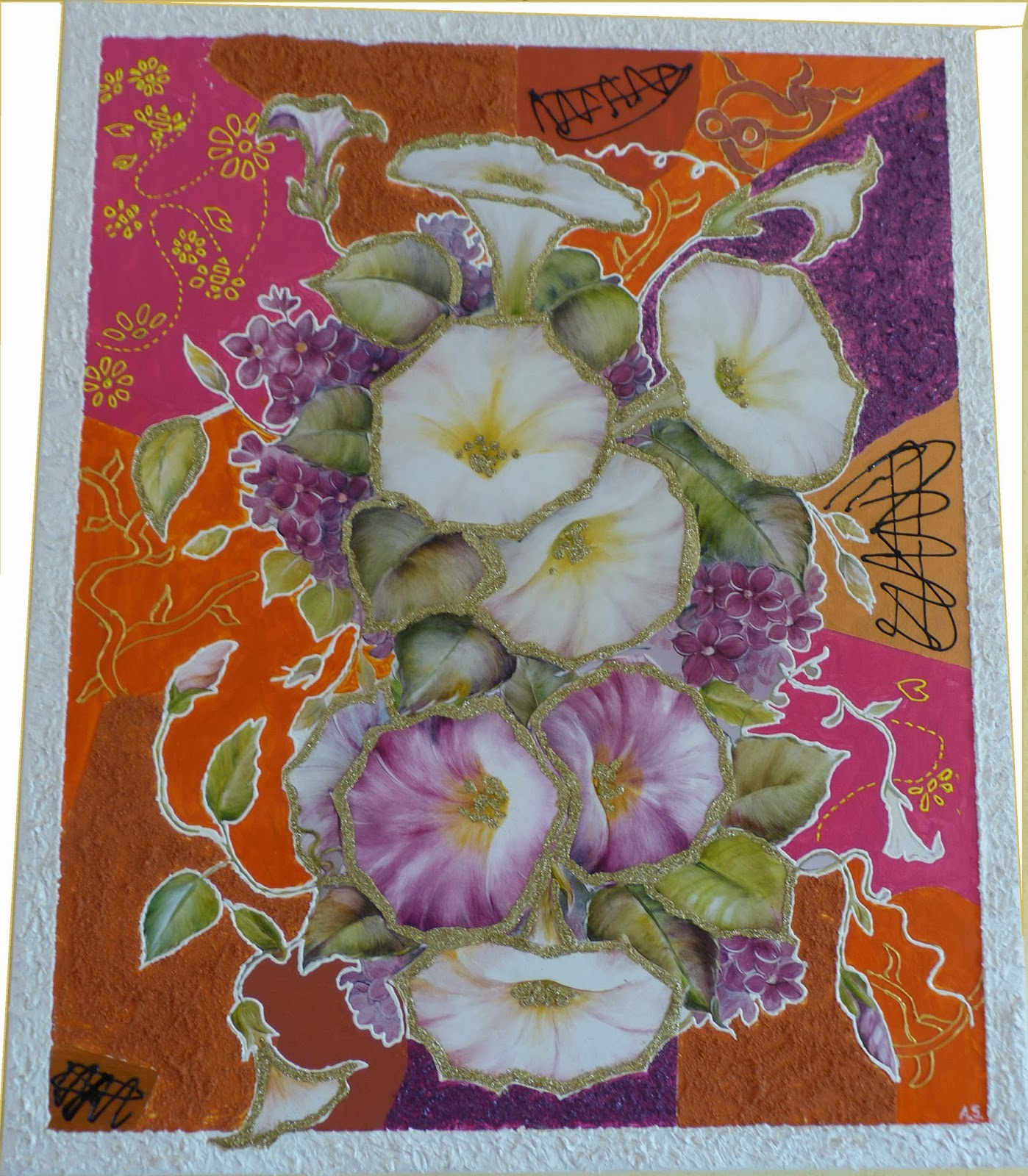 Delizioso Decoupage Decoupage Floreale Su Tela Con Effetti Destrutturati