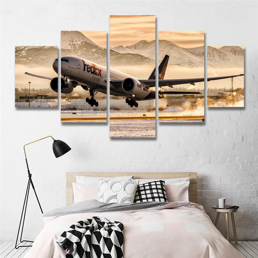 Decorazione Della Parete Di Stampa Hd Quadro Modulare Aereo Aeroporto Quadri Su Tela Di Arte 5 Pezzi Aereo Decolla Poster Dipinti Pittura E Calligrafia Aliexpress