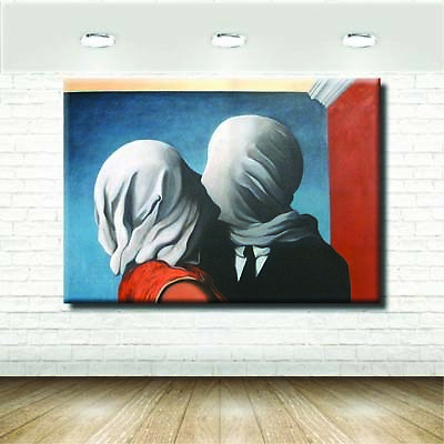 Quadri Famosi Moderni Amanti Magritte Rosso Stampa Tela Arte Arredo 80x57 Ebay