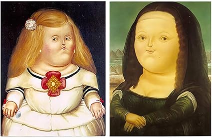 Dcine Quadri Artista Botero La Menina La Mona Lisa Su Legno Set Di 2 Pezzi Da 19 Cm X 25 Cm X 6 Mm Unita Adesivo Facile Da Appendere Decorazione Decorativa