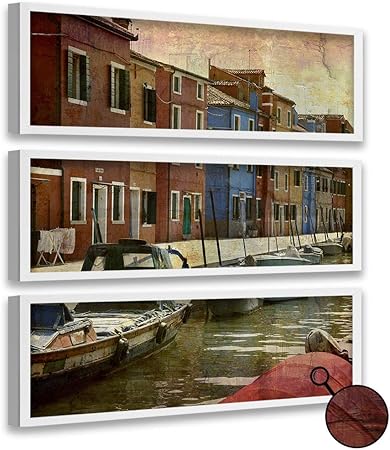 Feeby Quadri Moderni Verticali Case Colorate Di Venezia Cornice Bianco 50x54 Cm Amazon It Casa E Cucina