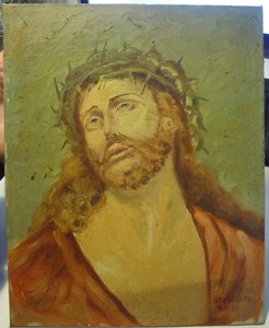 Dipinto A Olio Con Immagine Di Gesu Cristo Coronato Di Spine Pittore Ebay