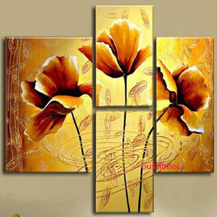 Quadri Dipinti A Mano Fiori Gialli Dipinti Ad Olio Su Tela Per Soggiorno 4 Pz Set Immagini Di Gruppo Sulla Parete Oil Painting Paintings On Canvasoil Painting On Canvas Aliexpress