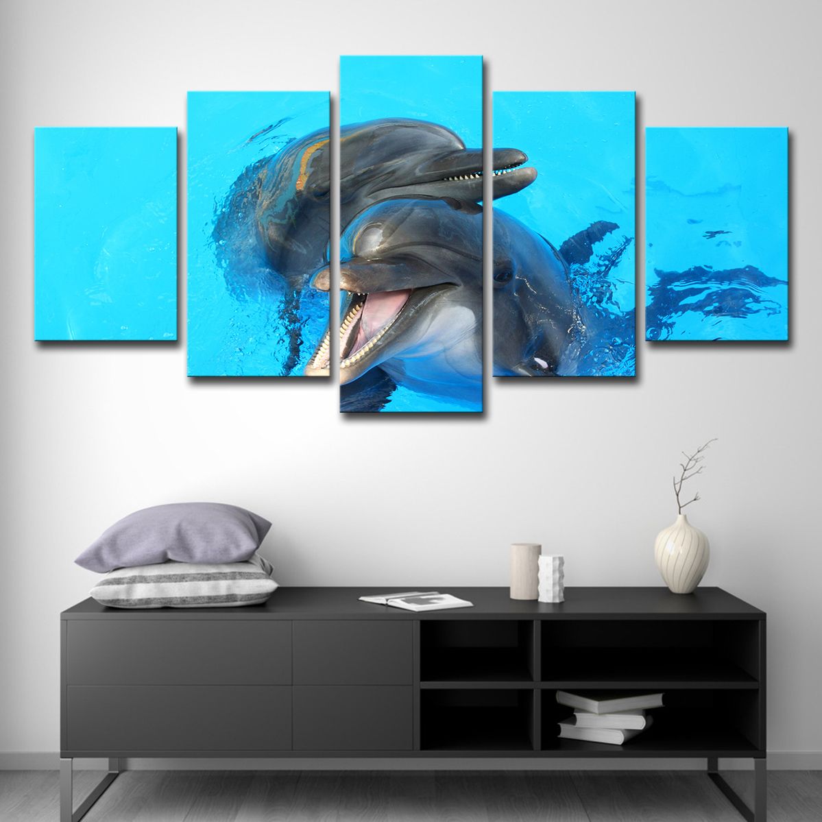 Acquista Quadri Su Tela Decorazioni La Casa 5 Pezzi Dolphin Dolci Dipinti Hd Stampe Di Animali Marini Poster Arte Murale Di Soggiorno A 12 27 Dal Print Art Canvas Dhgate Com