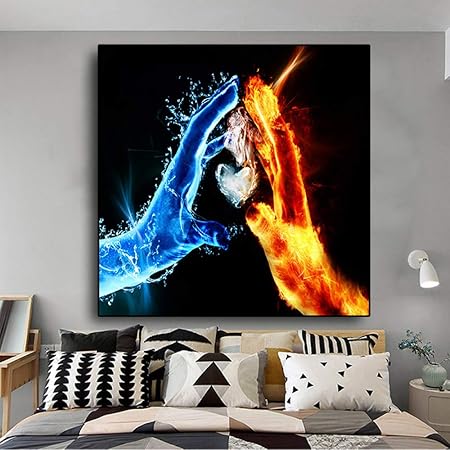 N A Fuoco E Acqua Amore Quadri E Stampe Su Tela Quadri Su Tela Immagine Nordica Di Pareti Decorazioni Per Soggiorno Senza Cornice Amazon It Casa E Cucina