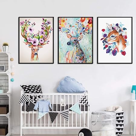 Wydlb Animale Astratto Cervi Caribu Fulvo Fiore Poster E Stampe Quadri Su Tela Dipinti Murali Quadri Per Soggiorno Decor 50x70cmx3 Senza Cornice Amazon It Casa E Cucina