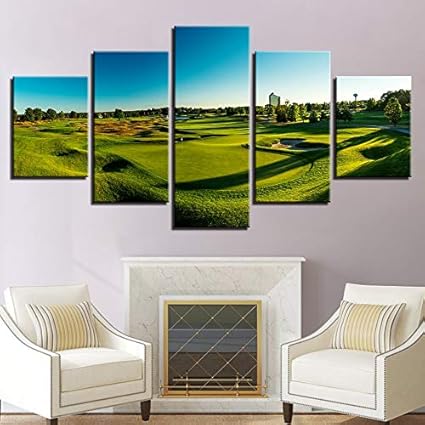 Quadri Economici Modulari Stampe Su Tela 5 Pannelli Campi Da Golf Cornici Moderne Per Pittura Arte Murale Per Soggiorno Decorazioni Per La Casa Opere D Arte Con Cornice 30x40x2 30x60x2 30x80x1 Amazon It Casa E