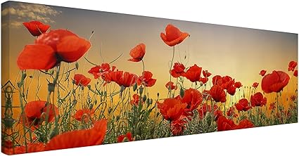 Topquadro Quadro Xxl Stampa Su Tela 100x50cm Campo Di Papaveri Fiori Rossi Al Tramonto Fiori Di Campo Decorazioni Interni Immagine Panoramica Amazon It Casa E Cucina