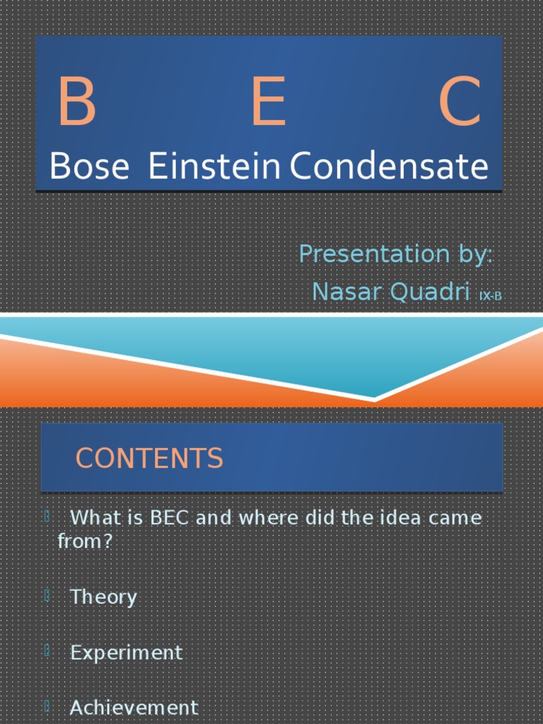 Bose Einstein Condensate Presentation Mechanics Physical Chemistry