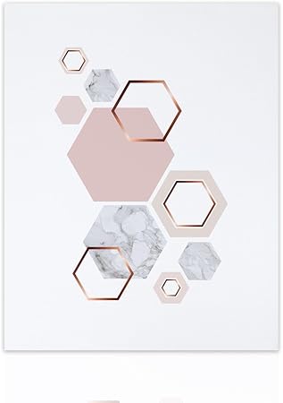 Declea Quadro Geometrico Moderno Intelaiato Pronto Da Appendere Con Esagoni Rosa Effetto Marmo Quadro Canvas Dipinto Geometrico Per Salotto Camera Da Letto Design Amazon It Casa E Cucina