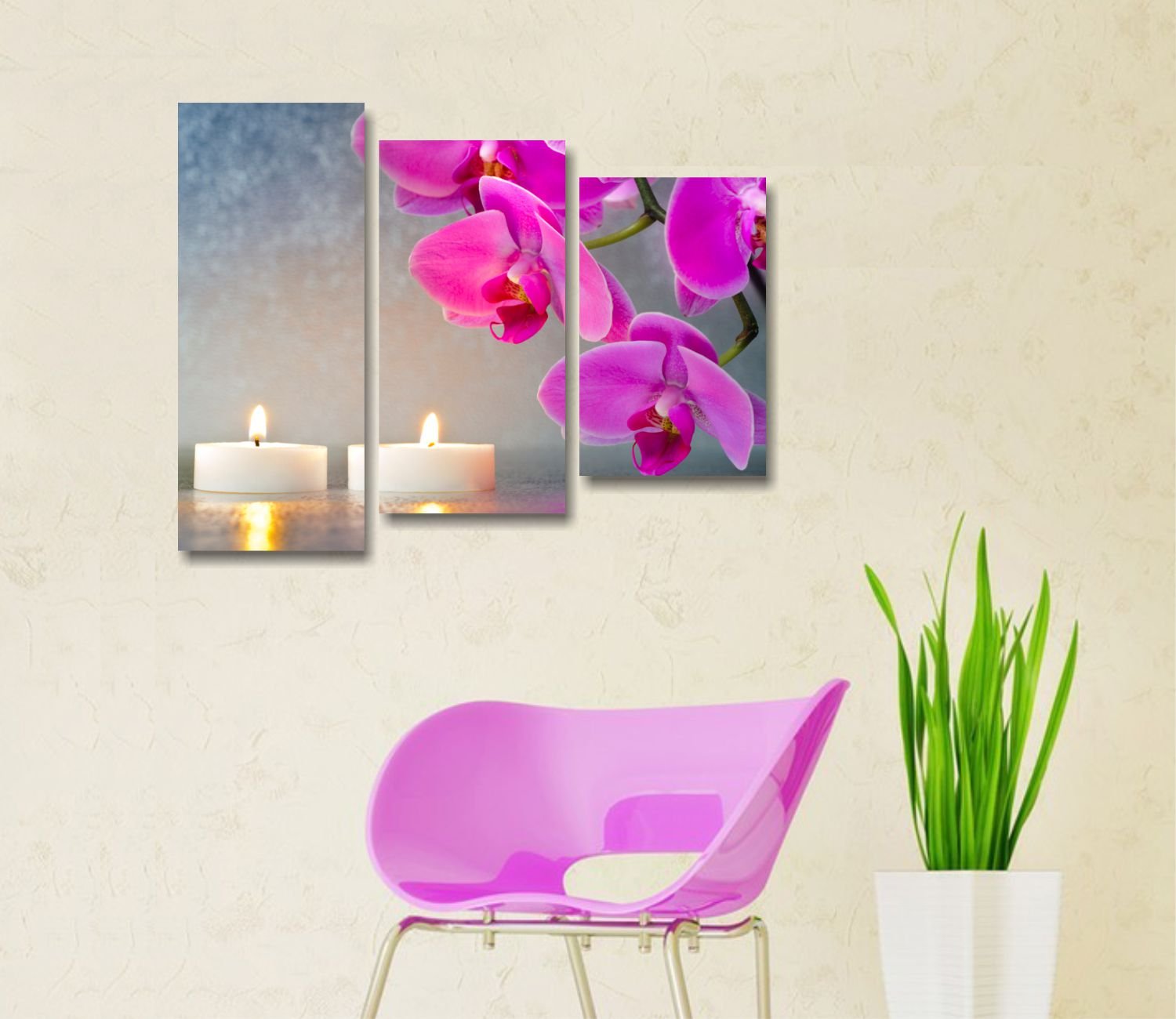 Quadri L C Italia Zen Candele Orchidee Quadro Su Tela 85 X 60 Cm 3 Pannelli Arredamento Moderno Stampa Canvas Centro Benessere Estetico Wellness Relax Spa Candele Orchidea Rosa Fiori