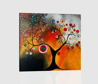 Quadri Moderni Etnici Dipinti A Mano Olio Su Tela Arancione Albero Salone Casa Ebay