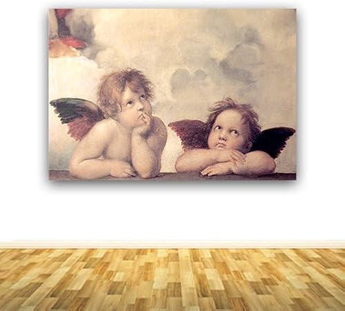 Lux Raffaello Angeli Madonna Sistina 100x50 Cm Quadro Stampa Su Tela Con Telaio In Legno Amazon It Casa E Cucina