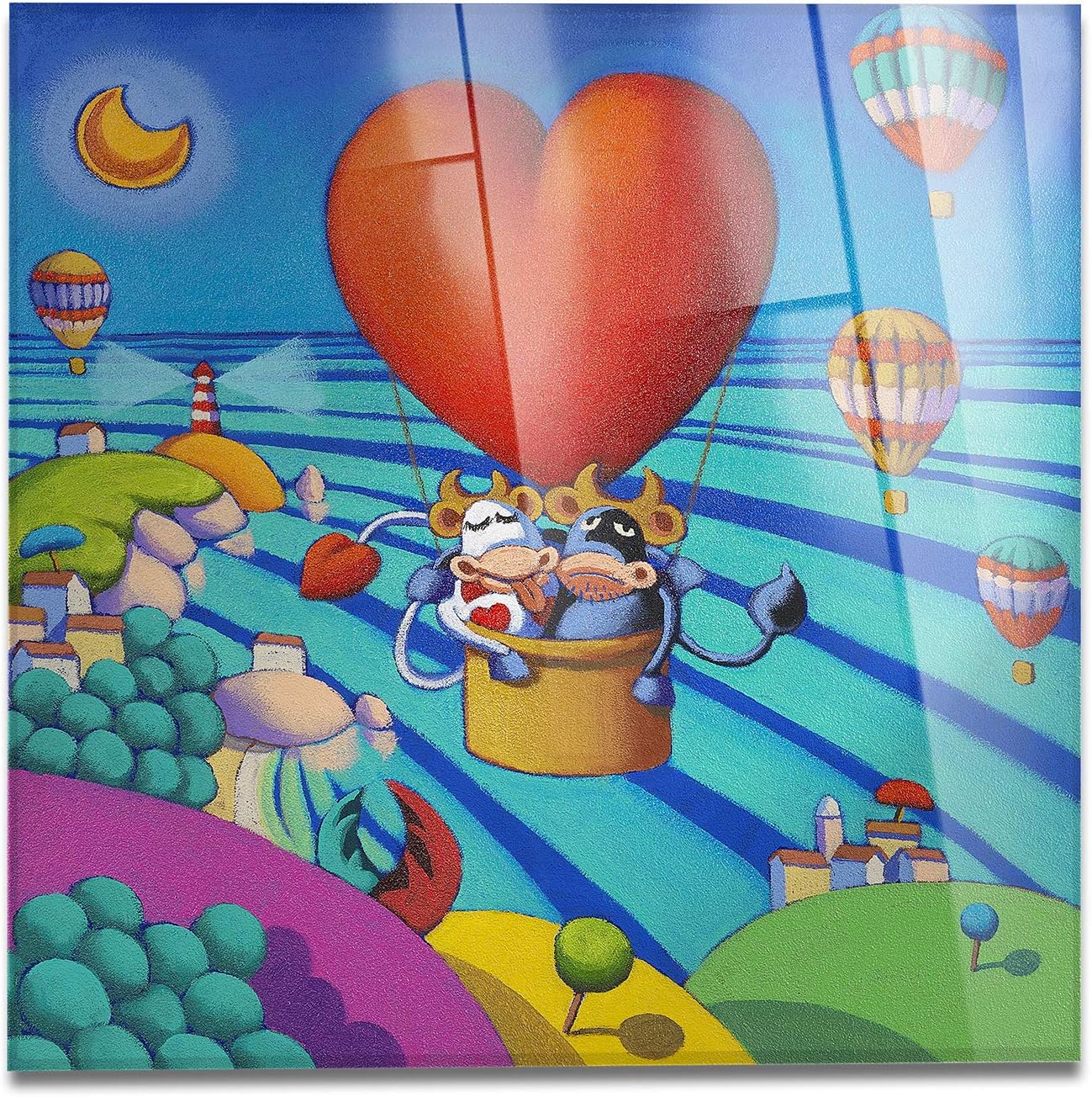 Giallobus Quadro Stefano Calisti Toro E Mucca In Mongolfiera Stampa Su Su Vetro Acrilico Plexiglass Pronto Da Appendere Quadri Moderni Arredo Casa Decoro Design Vari