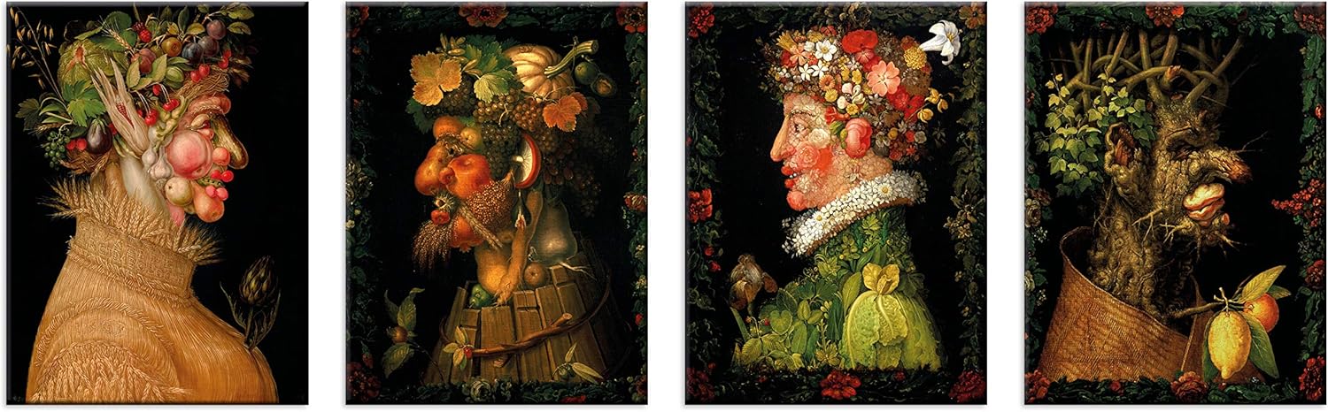 Luxhomedecor Quadri Giuseppe Arcimboldo 4 Pezzi 40x30 Cm Stampa Su Tela Con Telaio In Legno Arte Arredo Amazon It Casa E Cucina