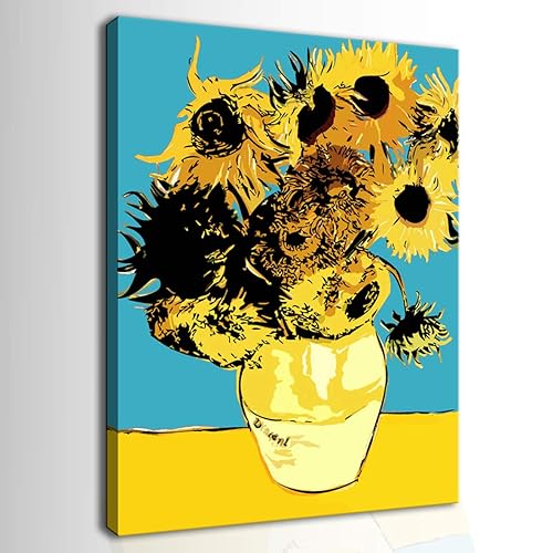 Quadro Stile Pop Art Dipinto A Mano Su Tela Canvas Vincent Van Gogh Girasoli Riproduzione D