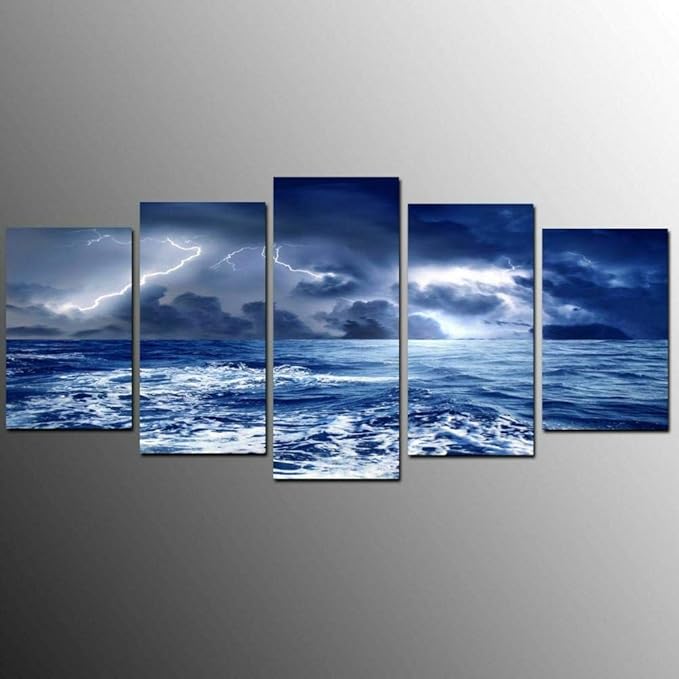 Runtooer Quadro Fulmine Mare Tempesta Cielo Nuvola 5 Pezzi Stampa Su Tela In Xxl Immagini Moderni Murale Fotografia Grafica Decorazione Da Parete Amazon It Amazon It